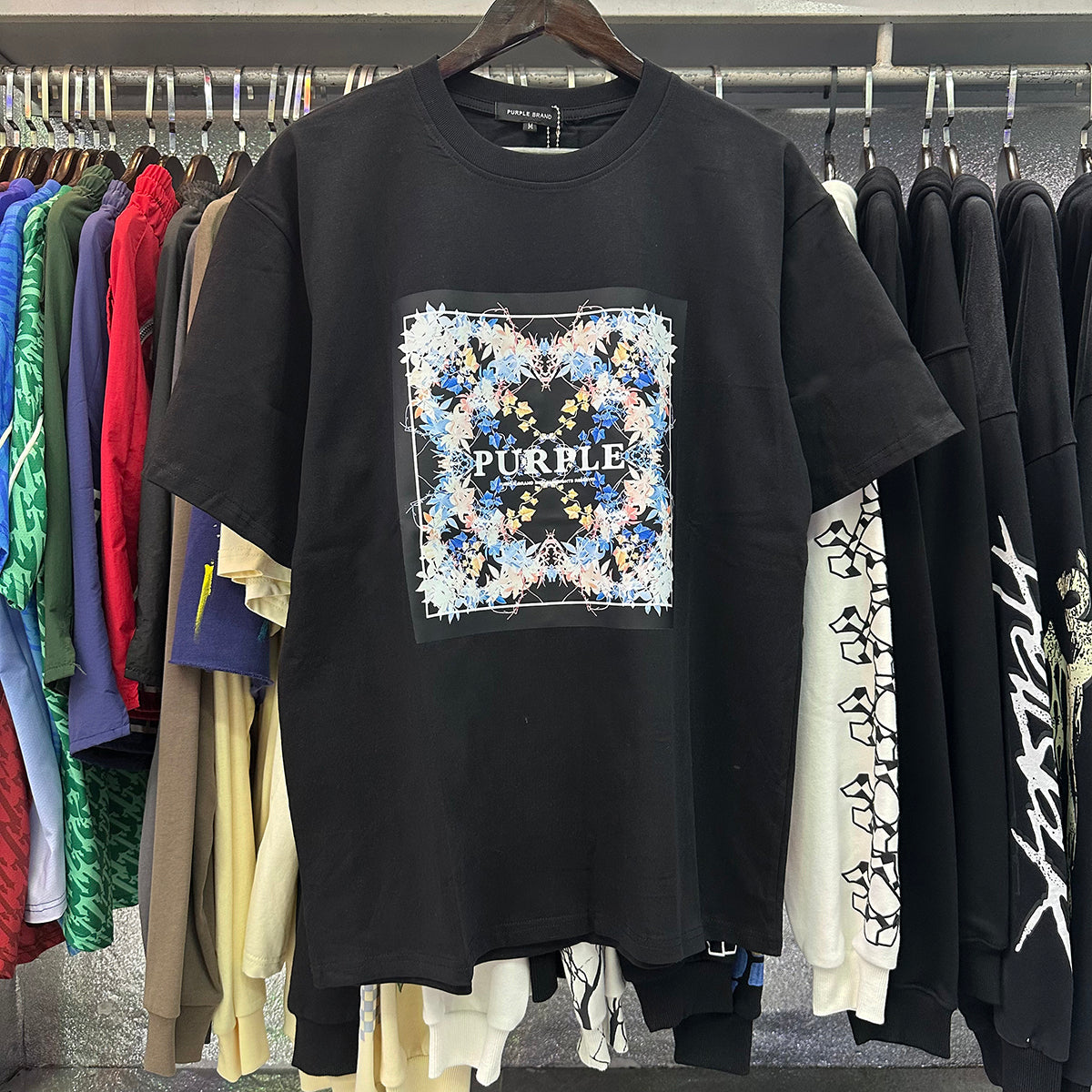 This short-sleeved tee is a premium green jersey knit cut from 100% cotton. This heavyweight style is faded throughout and features contrast Purple Brand logo block lettering across the chest. It’s tailored to a relaxed fit for elevated comfort and comes finished with a classic crewneck collar.